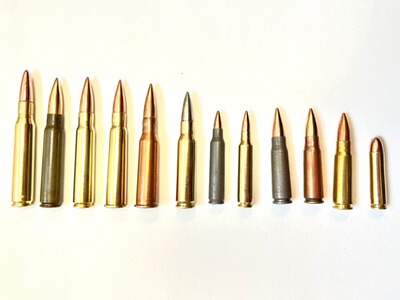 Sammlung- Konvolut an Langwaffen-Dekopatronen, 12 Stück, ZH überwiegend abgeschlagen, alle im guten-sehr guten sammelwürdigen Zustand.