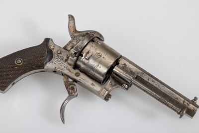Aus einem Nachlass, verkaufe ich einen Stiftfeuerrevolver (Lüttich) mit Holzgriff. Alle Teile sind gangbar. Hierbei handelt es sich vermutlich um einen Deko-Revolver der keinen Eintrag in eine Waffenbesitzkarte benötigt (Auskunft der Polizei Berlin). Der Revolver wird wie abgebildet verkauft. Gewicht ca. 300g, Länge 17cm. Privatverkauf ohne Rücknahme und Garantie, alle Angaben nach bestem Wissen und Gewissen. Versand per DHL Paket versichert nur in Deutschland,