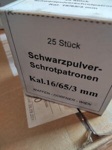 Schwarzpulver-Schrotpatronen 16/65/ 3mm
