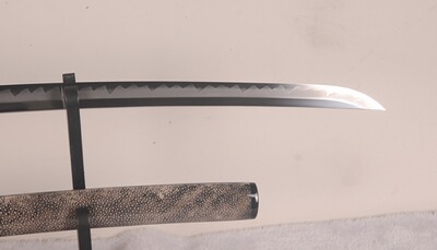 Die Schwertscheide ist mit Rochenhaut gestaltet. Das ist ein echter Hingucker und sieht sehr gut aus.