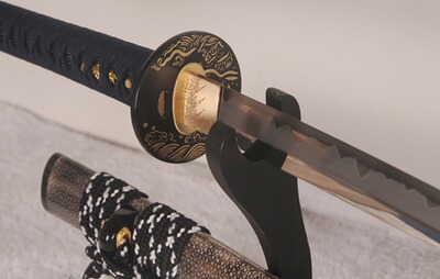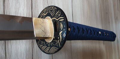 hiermit verkaufe ich mein Katana der Firma Lyuesword aus China. Es handelt sich dabei um ein Custom Katana, welches ich mir zusammengestellt habe. Ich wollte etwas außergewöhnliches, was nicht von der Stange ist und optisch etwas her macht und dabei trotzdem praxistauglich ist. Ich habe nicht so viel Ahnung von der ganzen Katana Materie, deshalb bitte ich um Verzeihung, dass ich hier die umgangssprachlichen Begriffe verwende. Bei den folgenden Angaben habe ich mich auf den Hersteller bezogen: