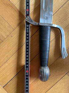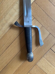 Sehr schöner Falchion mit lederscheide für Fechtraining ,Bühnenfechten oder ähnliches.Federstahl gehärtet (stumpf fürs sichere Training!). Unbenutzt. Sammlungsauflösung bitte andere Angebote beachten .