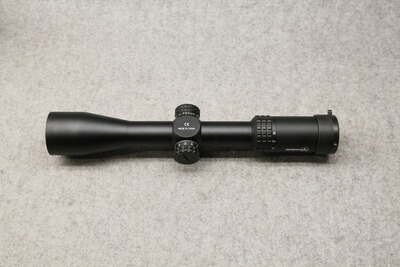 Absehen MIL-Hash (unbeleuchtet), in der zweiten Bildebene. Mittelrohrdurchmesser 30 mm, Sehfeld 9,7 m - 2,4 m auf 100 m, Augenabstand 95 mm, Stellweg Höhe und Seite je 130 cm, Parallaxeausgleich von 13,7 m bis unendlich, Klickverstellung 1 cm (0,1 MIL) auf 100 m. Gemäß Hersteller Schußfest bis Kaliber .338.