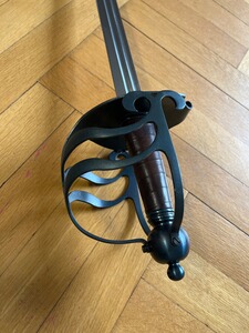Baskethilt Schwert der Schottischen Firma Armour Class, für Hema Fechten , Bühnenfechten oder reenactment .Gehärteter Federstahl (stumpf fürs training)!.Entspricht Originalen aus den Royal Armouries.Sammlungsauflösung bitte auch andere angebote beachten. 1 Qualitätsstufe Schaukampf 1 a.Mit dem Schwert wurde nicht gefochten , schlagkante top!