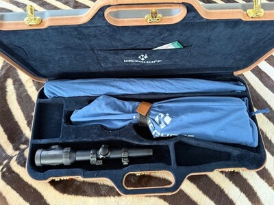 Angeboten wird eine gebrauchte Krieghoff Doppelbüchse Classic Side by Side im Kaliber .30 R Blaser. Im Angebot enthalten ist entweder der Linksschaft oder der Rechtsschaft, je nach Wahl des Käufers. Die Waffe ist mit einem hochwertigen Swarovski Z6i 1-6 EE Zielfernrohr ausgestattet, das mittels Schwenkmontage montiert ist. Der Krieghoff-Koffer und ein brauner Neopren-Gewehrriemen sind ebenfalls Bestandteil des Angebots.