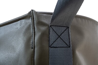 - Gurtbänder umlaufend ausgeführt, verschweißt und nahe den Griffen mit Riegelnähten verstärkt