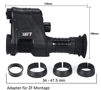 Das gerät kann sowohl als reines Nachtsichtgerät, als auch, mit den beiliegenden Adaptern, als Nachsatzgerät auf dem ZF verwendet werden. Genaueres im Netz unter: https://www.amazon.com/stores/UUT/%E4%B8%BB%E9%A1%B5/page/65FE1C45-6A65-4255-99D6-55507F05C543
