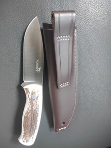 Parforce Hunting Knife Jagdmesser mit traditionellen Hirschhorn Schalen, Klinge aus 1.4116 Hochleistungs stahl, inkl. Lederholster. Klingenlänge ca. 10,5cm. 4 mm Klinkenstärke