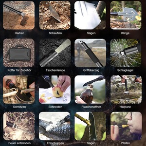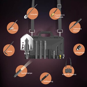 Tactical-Survival-Schaufel Set 13 in 1 mit vielen Funktionen