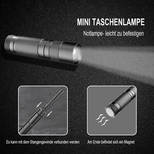 - kleine Taschenlampe mit Magnet auf der Rückseite, um sie ggf. an metallischen Gegenständen zu befestigen (Lieferung ohne Batterien)