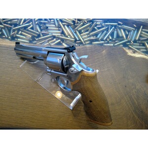 Gebrauchter Revolver Smith & Wesson .357Mag in gutem Zustand. Modell 627-0 ca. 1989 mit 6 Schuss Trommel N- Frame. Edelstahl ungeflutete Trommel. Mit verschiednen Griffschalen als Zubehör. Allgemein wenige Nutzungsspuren daher fast sehr guter Zustand. 5,5 Lauf