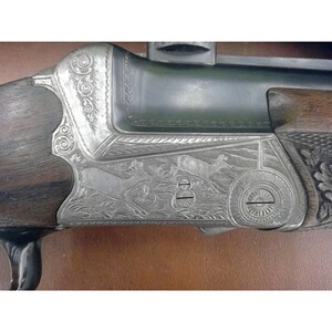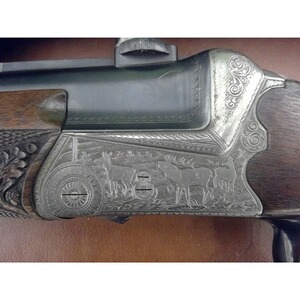 Bockbüchsflinte SodiaKaliber 16/70 und 7x65RLauflänge 60 cmSchaftlänge 37 cmAugenabstand 29 cmGravur Rot- und Rehwildmontiert mit Zeiss Diatal-Z 6x42 Absehen 4HornabzugsbügelRückstecher