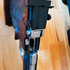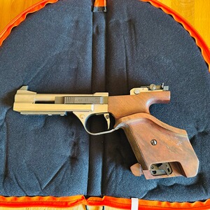 Diese Sportpistole von Feinwerkbau, Modell AW93, steht zum Verkauf. Das Baujahr der Pistole ist 2003. Es gibt keine Anzeichen für intensiven Gebrauch, da wenig damit geschossen wurde. Die Funktion der Pistole ist einwandfrei. Ausgestattet mit einer zusätzlichen Gewichtsplatte von 40 g, die bei Bedarf abgeschraubt werden kann. Der Originalkoffer und zwei Magazine sind im Lieferumfang enthalten. Der Griff ist für Rechtshänder ausgelegt.