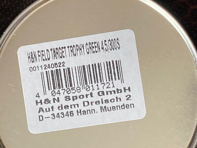 Zum Verkauf stehen 2 Dosen H&N Field Target Trophy Green im Kaliber 4,5mm/177 cal.