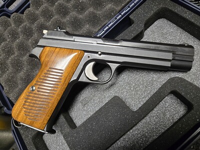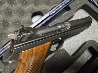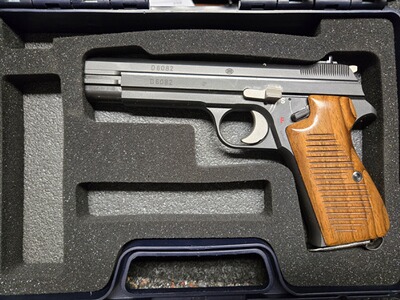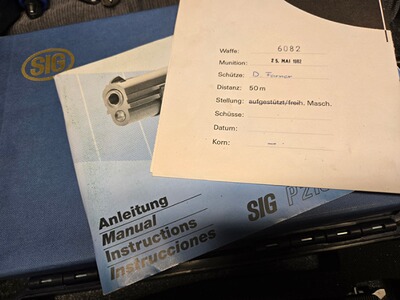 Zu diesem Klassiker muss man eigentlich nichts sagen. Toppräzise, hervorragender Abzug, eine feine Visierung, mit der Waffe kann man seit Jahrzehnten gewinnen. Gerade in Dienstpistolendisziplinen wie BdMP DP1 kommt man schwer an ihr vorbei. Die vorliegende stellt dennoch eine Besonder- und Seltenheit dar: Aufgrund der großen Nachfrage und dem nicht immer sehr guten Zustand der wohl 5021 gebauten Waffen gab es den Wunsch, die Waffe neu aufzulegen. Nach der Überlieferung bestellte die Firma Frankonia Jagd (Würzburg) 1995 bei SIG eine Serie der SIG P210-4, welche die Nummern D 6001 bis D 6500 erhielten. Die Waffen waren mit Holzgriffschalen ausgestattet. Insbesondere erhielten sie den Ladestandsanzeiger, der auf der Oberseite des Verschlusses angeordnet ist und anzeigt, ob sich eine Patrone im Patronenlager befindet. Die Waffe aus der original Schweizer SIG-Fertigung ist nach meiner Beobachtung sauberer verarbeitet, als die Waffen aus den 50ern, die Oberflächen vor allem innen deutlich besser und auch der bekannte Unterschied zwischen der Brünierung von Verschluss und Griffstück ist hier nicht gegeben. Als Besonderheit ist die Visiserung etwas weniger filigran, wie es bei den späteren SIG üblich ist, für Schützen besser aufzunehmen. Der Zustand der Waffe ist hervorragend, die Bilder vermitteln einen guten Eindruck. Natürlich ist der Lauf blitzblank und scharfkantig, die Holzgriffschalen sind wunderschön. Die Pistole kann nach Absprache in Leipzig begutachtet und u.U. auch zur Probe geschossen werden, gern ist unter Wegfall der Versandkosten auch eine Abholung möglich. Zur Waffe gehört auch die Anleitung, der Karton (ohne den wie immer aufgelösten Schaumstoff) sowie ein Anschussprotokoll, lassen Sie sich hier nicht täuschen, das wurde auf 50m (!) geschossen. Merkwürdig ist, dass dieses aus den 80er Jahren stammt. Wurden die Waffen bereits in den 80ern gefertigt und erst Mitte der 90er an Frankonia geliefert? Vielleicht lief die Produktion auch länger, die Seriennummer stammt aus einem niedrigen Bereich der Neuauflage. Interessant wäre hier weiter zu recherchieren. Weiterhin ist ein alltagstauglicher Kunststoffkoffer von Walther im Lieferumfang enthalten. Kunden aus dem Ausland sind natürlich willkommen, wenn Sie den Import/Export über einen deutschen Händler abwickeln (zum Beispiel Waffen Bock in Pirmasens). Bitte beachten Sie auch meine hochwertigen Angebote bei Auctronia (https://www.auctronia.de/suche?searchcategory=&q=leipzigerzeugwart) sowie immer wieder auch bei www.egun.de (in der Detailsuche „nur Artikel von Benutzer“ den Suchbegriff „leipzigerzeugwart“ eingeben).