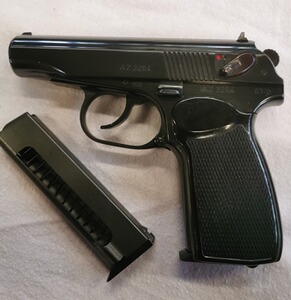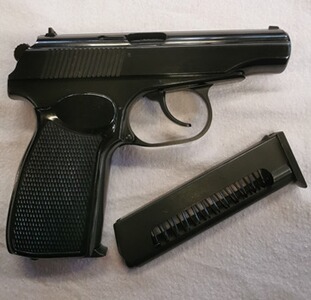 Ernst Thälmann PM Makarov Suhl DDR Pistole im Kaliber 9 x 18 Makarov wird zum Kauf angeboten. Die Pistole ist aus DDR-Produktion und augenscheinlich ungeschossen, abgesehen vom Beschuss. Ein Ersatzmagazin ist im Lieferumfang enthalten.