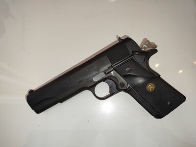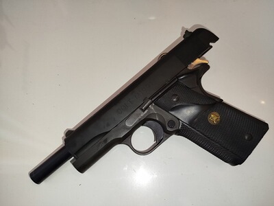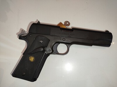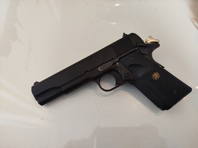Colt 1991 A1 in 45 ACP. Neu gekauft 94 bei Kettner dich meinen Vater. Tolle Präzision. Habe mit ihr als Dienstpistole mehrere 1-4 Plätze geholt. Der Abzug steht bei 1300g. Hauptsächlich wurde das Wechselsystem im RSB genutzt. Ladedaten können gerne weitergeben werden. Mit dazu gibt es ein Wechsellauf in 38-45 Clerke passende Matritze und Umformsatz gibt es separat zu kaufen. Gerne anschreiben. Tolles Setup für den BDS DSU und RSB. Ich selbst habe vor kurzem erst einen kombiausstoßer für 45 und 9mm machen lassen kosten 280€. Der angegebene Preis ist natürlich VB. Abholung in Dormagen wäre am liebsten. Sollte versendet werden bitte vorher bei WhatsApp melden. 017643406859.