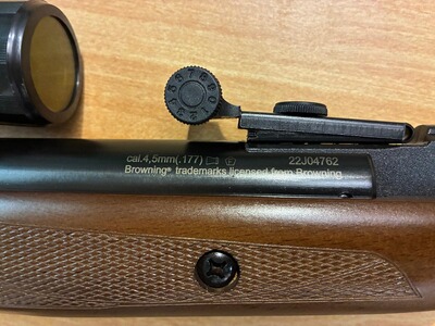 Sie bieten auf ein Browning Luftgewehr mit Zielfernrohr 4x32, welches sich in einem sehr guten Zustand befindet und nur zum einschiessen genutzt wurde, siehe Fotos.