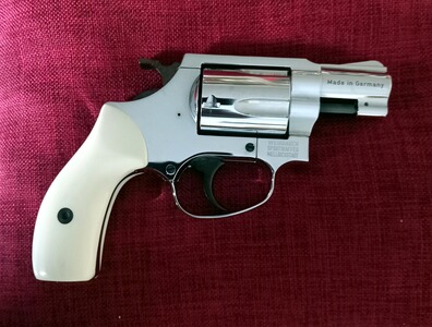 Biete neuwertigen Schreckschuß/Signalrevolver Weihrauch HW37 in Chrom. Kal.9mm R.Knall mit Elfenbein-Imitatgriffschalen. Der Revolver wird in Chrom nicht mehr hergestellt und ist nur noch selten zu bekommen. PTB 887. Als Privatverkäufer schließe ich jegliche Gewährleistung aus! Altersnachweis erforderlich!
