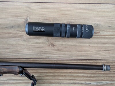 Schalldämpfer WHMG SD45, Multikalibe (bis 8mm), Dämpferelemente beliebig austauschbar, Gewindeadapter 15x1 inkludiert (andere Adapter zur Nutzung auf Waffen mit anderen Gewinden lassen sich beim Hersteller erwerben).