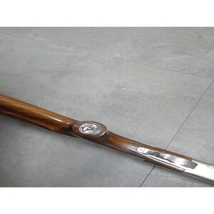 Kipplaufbüchse Eduard Kettner, Kal.: 7x65R, die Waffe wurde von einer Bockdoppelbüchse auf einläufige Kipplaufbüchse umgebaut, der Rest des unteren Laufes befindet sich unter dem Vorderschaft, bayerische Doppelfalzbacke, Schaftkappe aus Holz, Gravur der Basküle mit Goldeinlage, Motive: Gams, Bock und Birkhahn. Pistolengriffkäppchen Gams, Rückstecher, sehr guter Zustand,