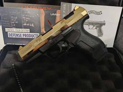 die Umarex Walther P99 – 24 Karat vergoldete Limited Edition, herausgegeben zum 25-jährigen Jubiläum der Walther P99. Dieses Modell war streng limitiert und ist mittlerweile weltweit restlos ausverkauft – ein echtes Highlight für Sammler!