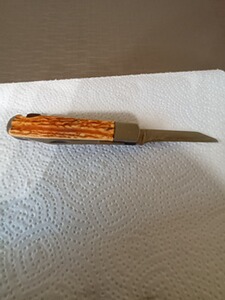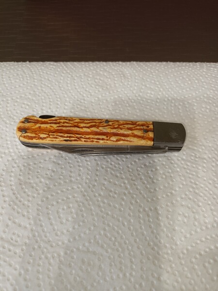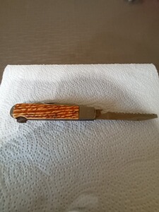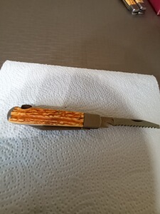 Verkaufe ein gebrauchtes Jagdmesser mit Gebrauspuren mit kleinen abplatzer an der griff schale. Das Jagdmesser wurde von der damaligen Firma GML Leegebruch aus DDR Zeiten hergestellt. Es ist sehr scharf. Die Klingenlänge ist 7,5 cm und Säge 8,5 cm Geschlossen 12 cm. Es ist noch Scharf.