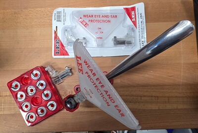 Biete hier ein LEE Zündhütchensetzer mit LEE Hülsenhalter pasend für 115 verschiedene Kaliber, sowie ein neues Ersatzteilset (siehe Bilder).