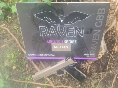 Die Nuprol Raven M1911 MEU Vollmetall GBB in der Farbe Tan ist ein hochwertiges Produkt für den Jagdsport und Outdoor-Aktivitäten.