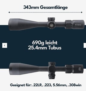 Die bekannte Paragonserie nun mit 25,4mm Tubus, wodurch einiges an Gewicht eingespart wurde was die Handlichkeit der Waffe/ZF Kombination vereinfacht.