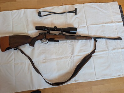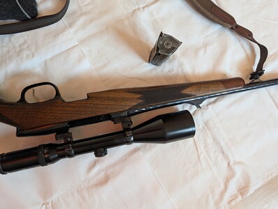 Die Büchse ist in einem guten, gepflegten Zustand und wurde von mir nur sehr selten geführt. Zielfernrohr, Stecher und Magazin in Ordnung, Holz und Brünierung dem Alter entsprechend sehr gut.