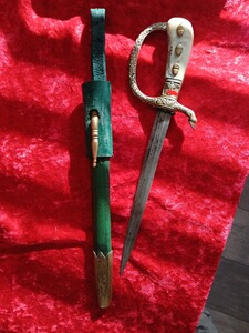 Verkaufe aus einer Erbschaft und großen historicher Sammlung einen schönen Bügel Hirschfänger mit Lederscheide!