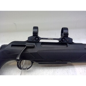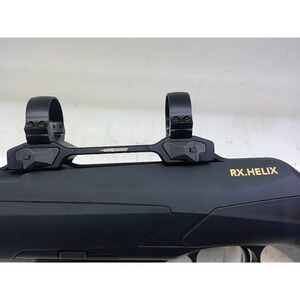 Repetierbüchse Merkel Helix Explorer in .30-06Sp. Lauflänge ca. 61 cm, Gesamtlänge ca. 7 cm. Kunststoffschaft schwarz, Mündungsgewinde, offene Visierung abnehmbar. Montage Innomount für ZF mit 30mm Mittelrohrduchmesser. Beschuss 02BH.