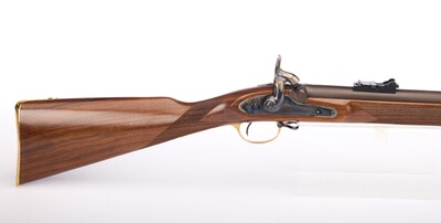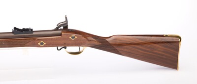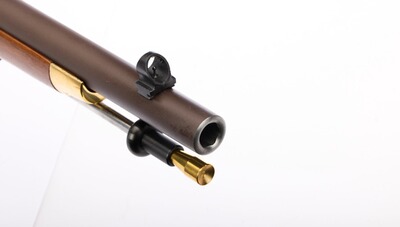 Es handelt sich um eine unbenutzte, neuwertige Vorderlader-Muskete, mit minimalen Lagerspuren. Kratzer an manchen Schrauben. Die Originalverpackung hat Lagerspuren. Zustand siehe auch Bilder.