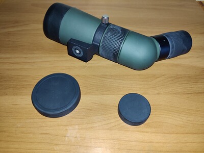 Die Objektivkappen sind mit dabei. Ideale Vergrößerung für 25m Stände. Neupreis aktuell 110€.