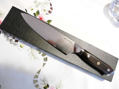 DAMAST-KOCH-VIELZWECK- MESSER -19cm Klinge, 73 Lagen, Heft: afrikanisches Ebenholz NEU