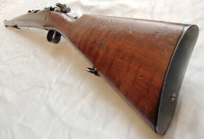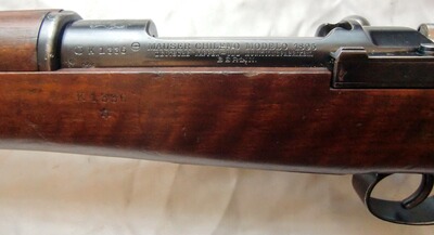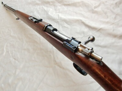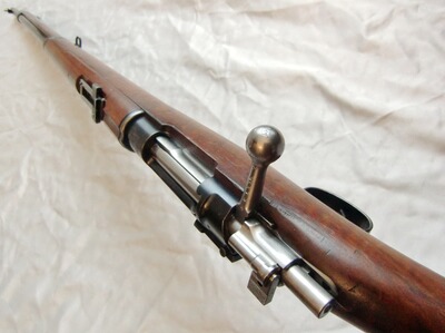 Ordentlicher Zustand für eine Militärwaffe diesen Alters - das gute Stück ist immerhin schon weit über 100 Jahre alt! Natürlich mit Trage- und Gebrauchsspuren einer militärisch geführten Waffe – gebraucht, jedoch gepflegt. Augenscheinlich nicht überarbeitet. Der Lauf ist partiell leicht matt, Züge und Felder sind deutlich ausgeprägt, kein Rost erkennbar. Brünierung ca. 92%. Der Schaft mit div. Kratzern und Druckstellen ringsum, jedoch ohne wirklich große Beschädigungen. Einwandfreie Funktion auf dem Schießstand. Ansonsten eine schöne Gebrauchtwaffe - mittlerweile immer seltener zu bekommen!