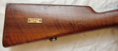 Rechts auf dem Schaft ist ein Emblem mit der Aufschrift E.H. Boss 1895 aufgeschraubt
