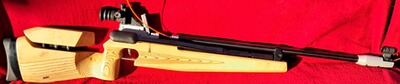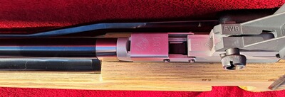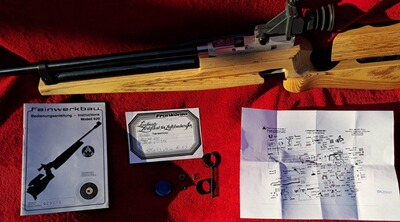 Es schießt FWB-typisch sehr präzise und das mit ordentlich "Wums", denn alle Dichtungen, die Kolben-Gleitringe sowie die Federn wurden frisch erneuert, die alten Teile lege ich bei!