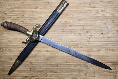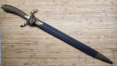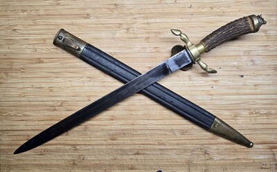 Alter Hirschfänger 1. Hälfte XX. Jhdt. mit Lederscheide.