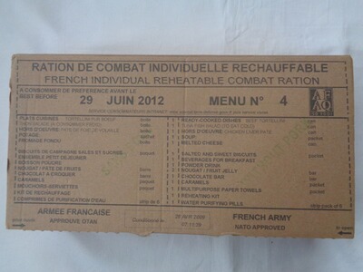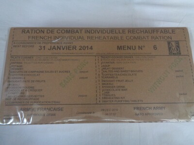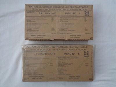 Verkaufe zwei original Einmannpakete (EPA) bzw. Feldrationen der französischen Armee in neuem Zustand, aber überlagert und somit nur noch für Sammlerzwecke geeignet.