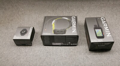 Das GARMIN Hundeortungsgerät Set besteht aus Alpha 200i K Handgerät, Hundeortungsgerät Halsband K 5X und Armbanduhr Instinct 2.
