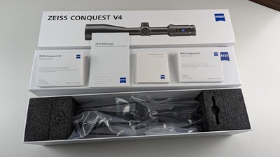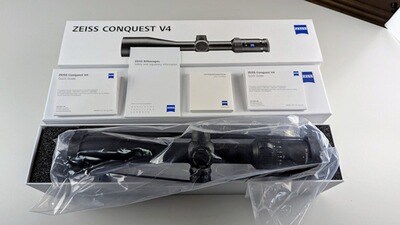 Ich verkaufe hier ein absolut neuwertiges Zeiss Zielfernrohr Conquest V4 4-16x44 mit dem Leuchtpunkt Absehen 60 (ähnlich Abs.4) und der Höhenverstellung ASV. Das Glas ist aus 2024 und wurde im Komplettpaket auf einer Neuwaffe (zwangsweise) miterworben. Es war nur einmal per Ringmontage (Tier One Montage hier in einer anderen Auktion zu finden) montiert und durch ein anderes ersetzt, da es nicht meinen Bedürfnissen entsprach. Es ist absolut neuwertig, keinerlei Gesbrauchsspuren zu sehen.