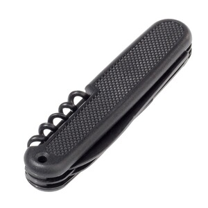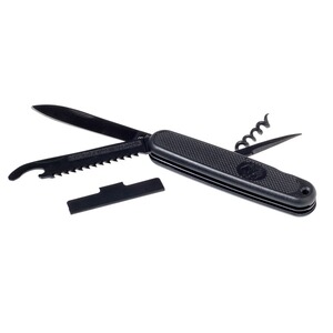 Messer, Säge, Schraubendreher, Flaschenöffner, Korkenzieher, Nagelfeile und Stechdorn