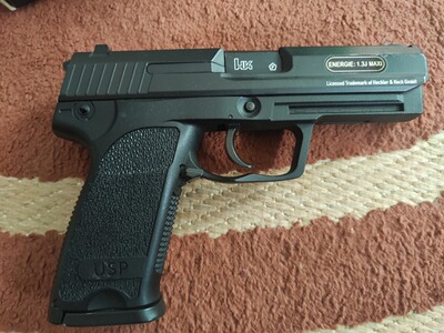 Die Umarex Softair Pistole Heckler und Koch wird angeboten. Dieses Modell ist mit einer Energie von 1,3 Joule ausgestattet und verwendet 6 mm BBs. Die Softair Pistole ist voll funktionsfähig und wird mit CO2 Kapseln als Zubehör geliefert.