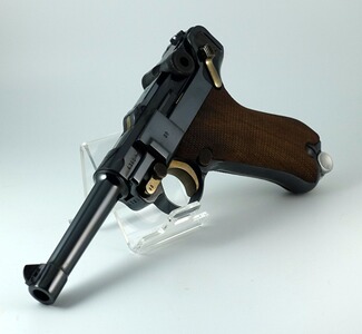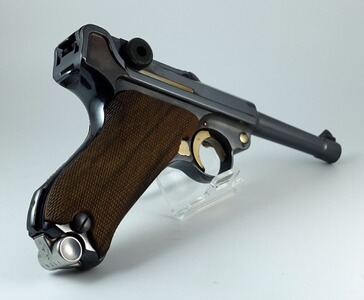 Hinweis: Moderne Fabrikmunition ist für den Kniegelenkverschluss der P08 Pistole in der Regel nicht optimal geeignet, weil zu stark. Waffe sollte mit sanften Ladungen benutzt werden bzw. mit speziell für Oldtimer hergestellten Laborierungen (z. B. Fiocchi Classic Line).