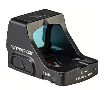 Das Defender-CCW Visier bietet eine große, klare Sichtöffnung und einen klaren roten Punkt, der es dem Schützen ermöglicht, schnell und genau das Ziel zu erfassen.
