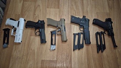 Verkaufe meinen kleinen Waffen Sammlung. 5 Pistolen und 1 Gewehr. 1 x P08, 1911er, Glock 19x, cp88, cp99 Snowstar und Luftgewehr Weihrauch HW50. Dazu gibt es eine Menge CO2 Katusche, zielsterne und Kugeln. Wirs alles zusammen verkauft mit Holster, Reinigungszeug und Waffenkiste. Nur Abholung. Weitere Bilder auf Anfrage.