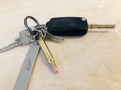 Schlüsselanhänger mit 5,56x45mm NATO-Patrone. ( Zivil .223 Remington )