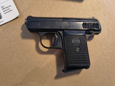 SM 110 Schreckschuss Waffe im Kal 8 mm.Mit dabei Original Karton Gebrauchsanweisung.